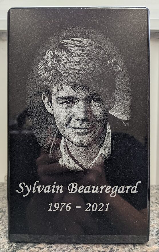 Custom engraving on black granite